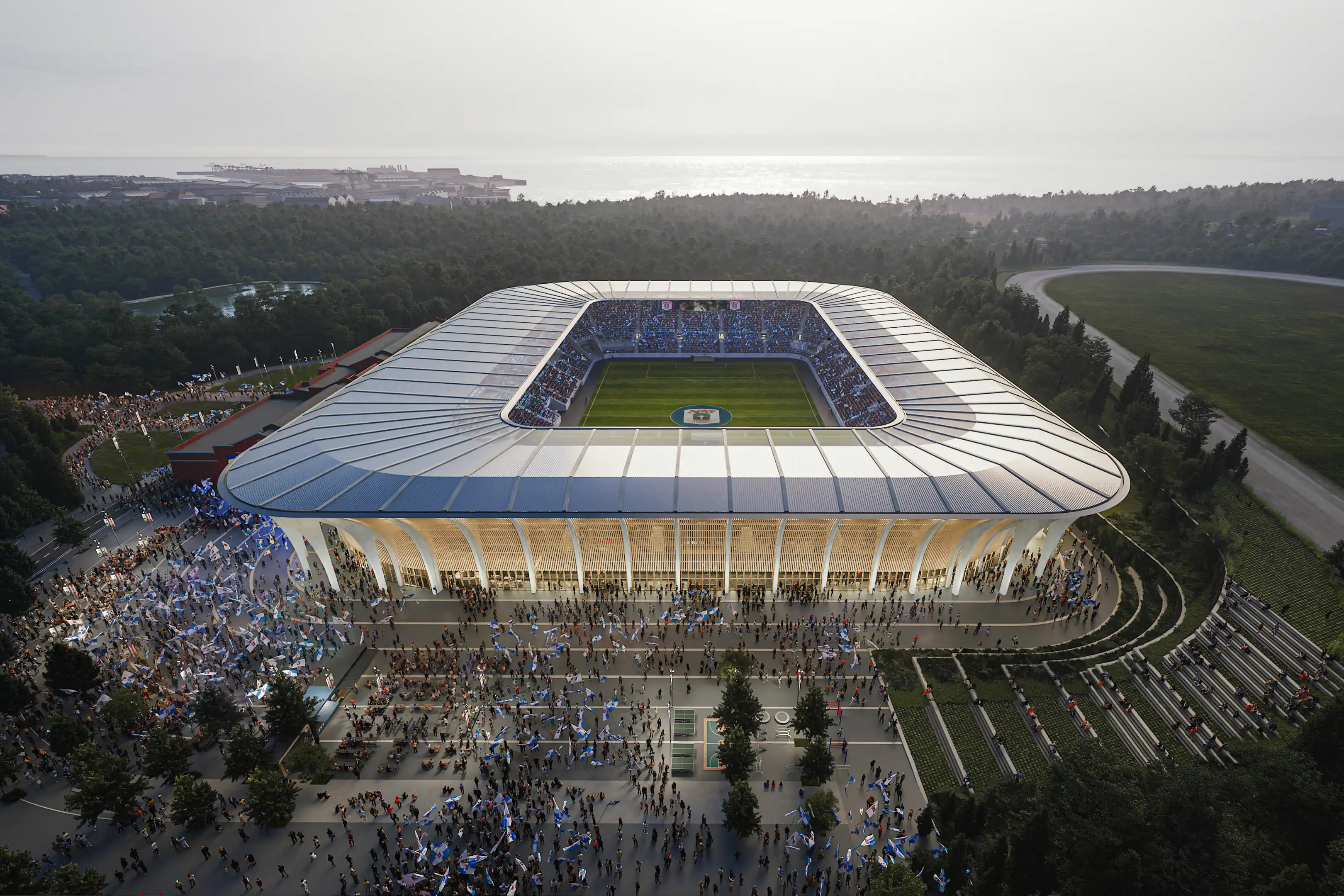 Rooted in the old forests of Marselisborg in the City of Aarhus, the proposal merges local heritage with a bold architectural identity. Inspired by the area’s neo-classical influences and the depth of the surrounding forest, the design shapes the stadium into a vibrant new destination for Aarhus. By harmonizing the site’s historical character with its natural setting, the project creates a welcoming gesture - one that bridges sports culture with the tranquility of Marselisborg’s woodland.